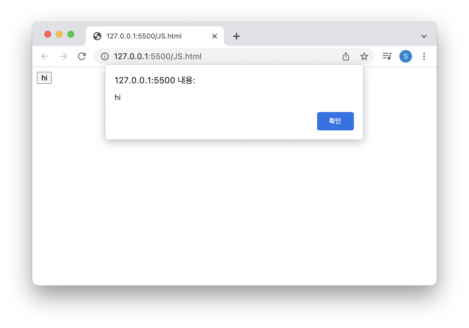 <input type="button" value="hi" onclick="alert('hi')">